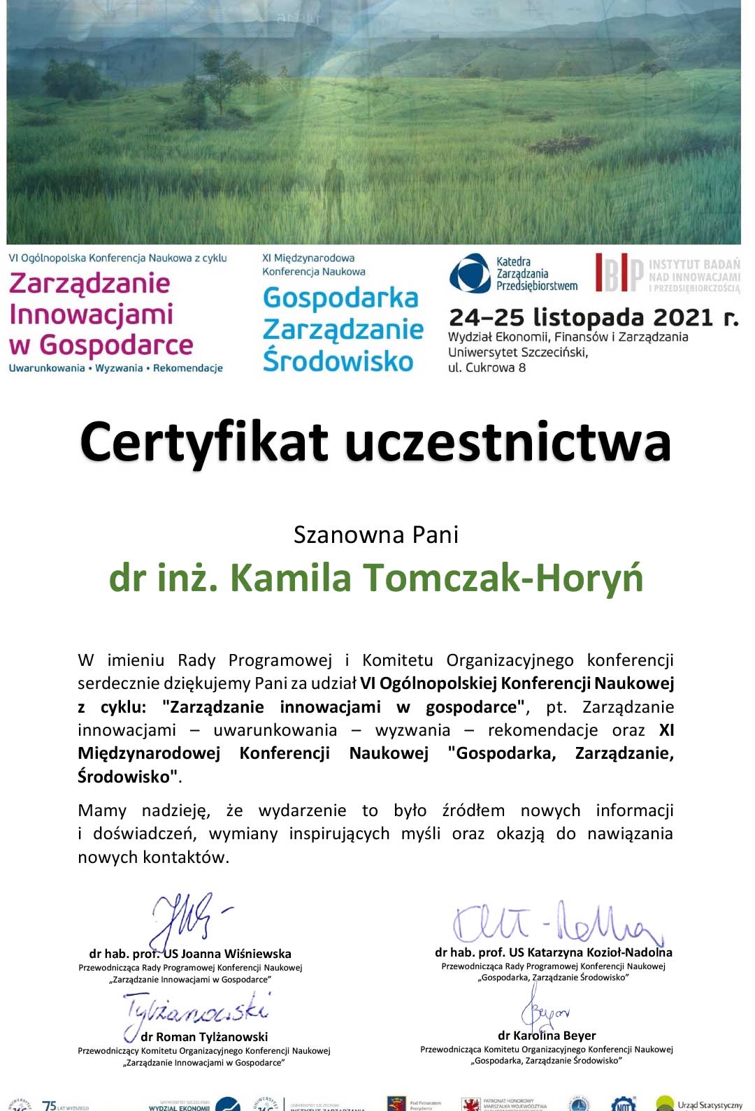 | 6 | 1-2.04.2021 | Recenzent prac naukowych 37th IBIMA Conference on Vision 2025 |