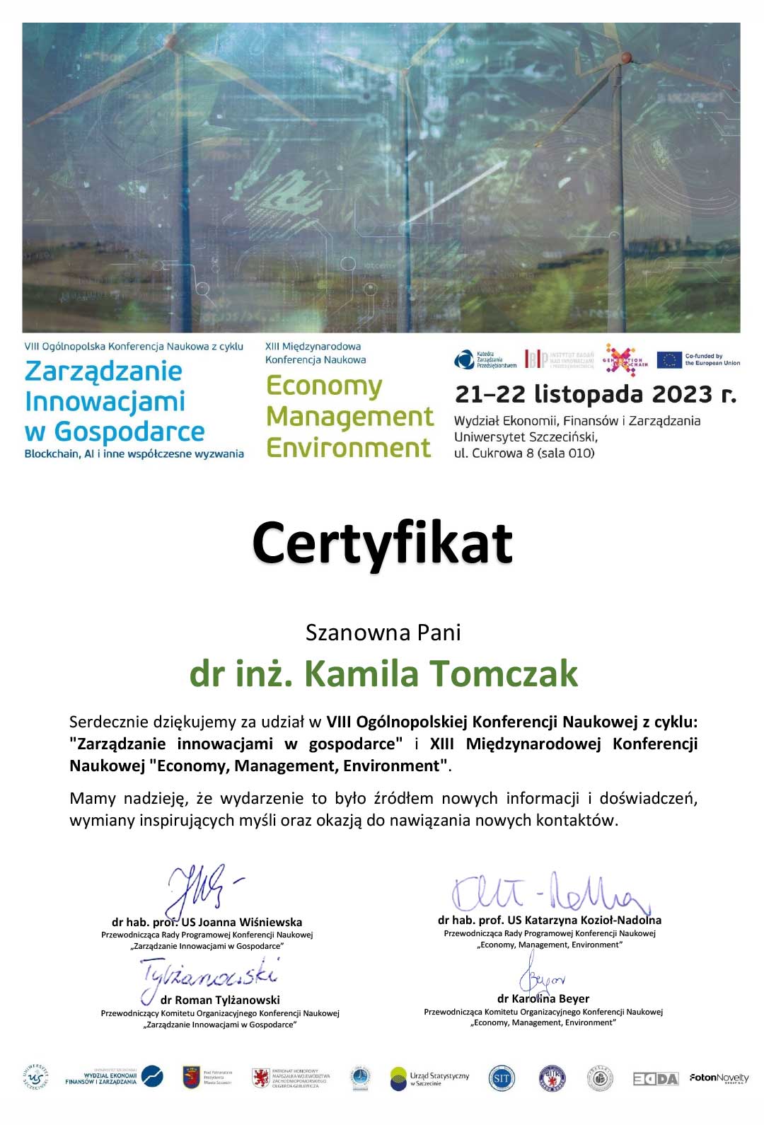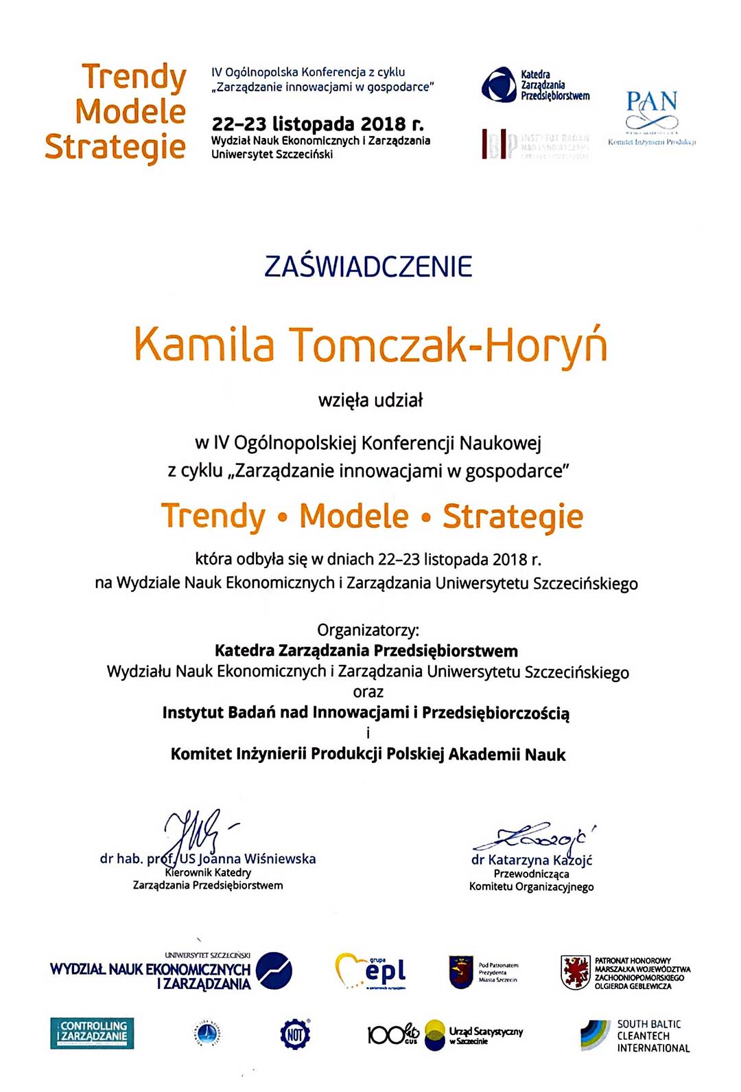 Tomczak-Horyń K.: Postawa twórcza pracowników-wyniki badań.[w:] Kazojć K. (red.): Zarządzanie przedsiębiorstwem w zmiennym otoczeniu, wiedza-decyzje-innowacje. Wyd. Volumina, Szczecin 2021, 17-27.