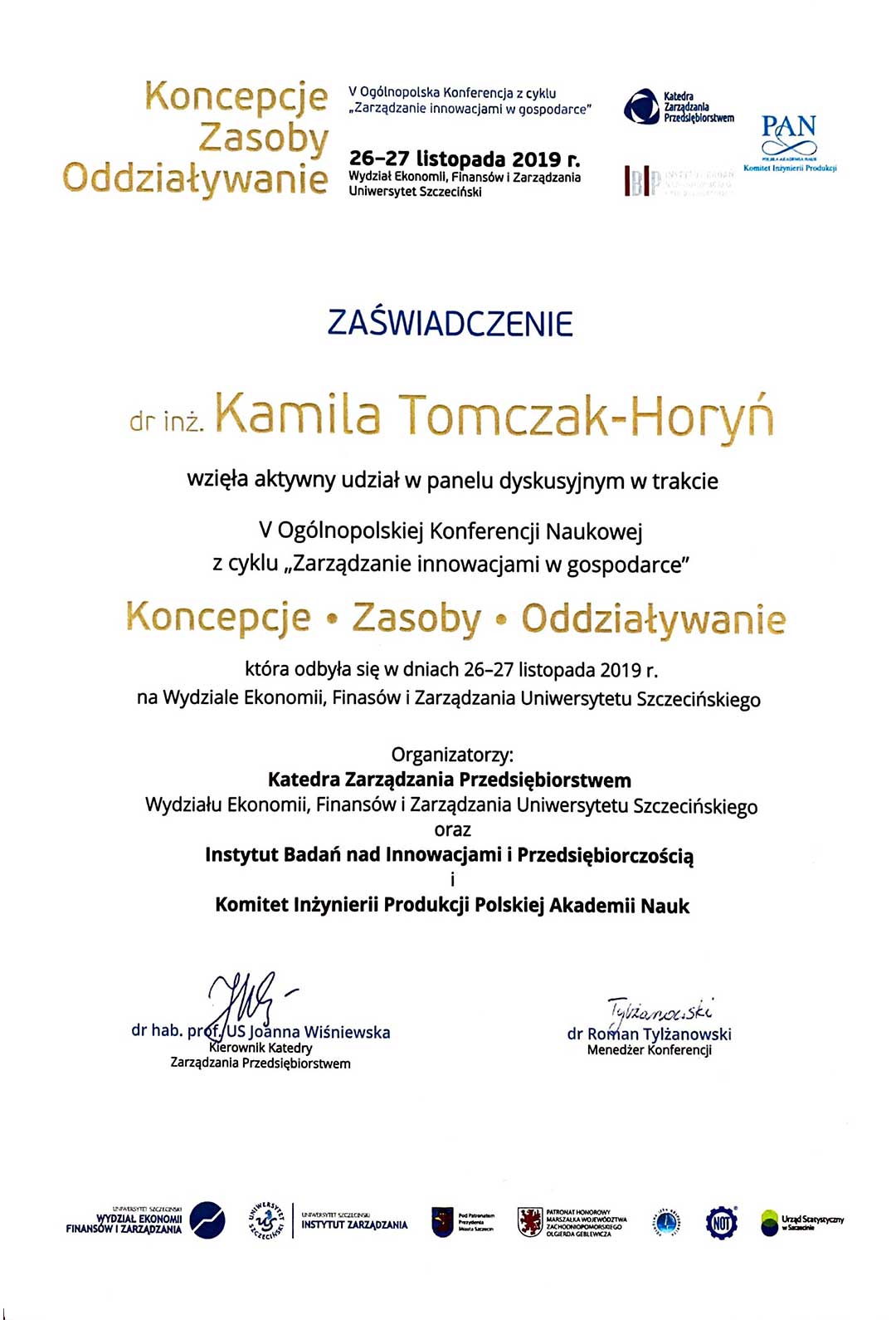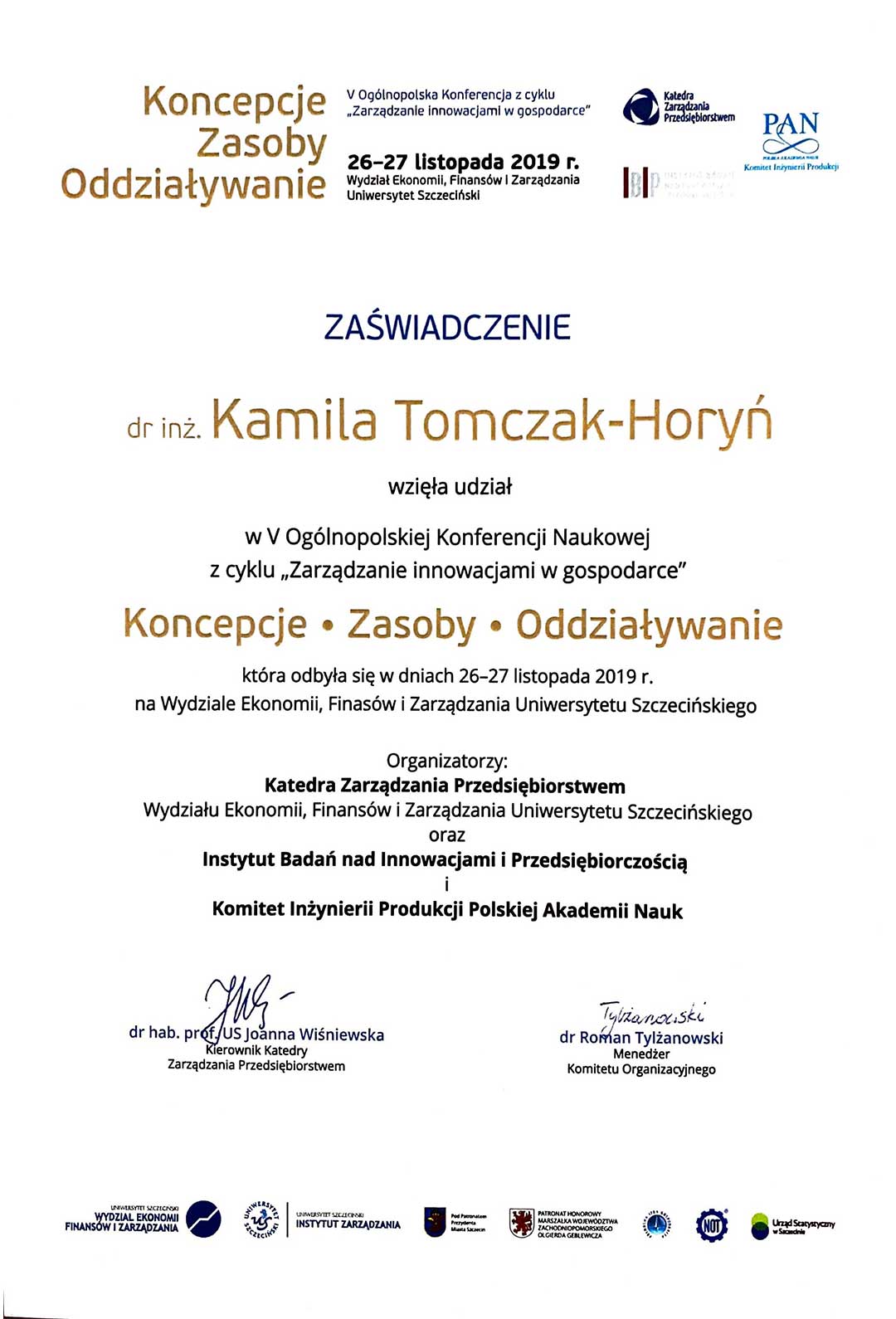 | 26 | 2017-2018 | Członek Komitetu Organizacyjnego Konferencji Innowacje w Zarządzaniu i Inżynierii Produkcji w Zakopanem organizowanej przez PTZP |
