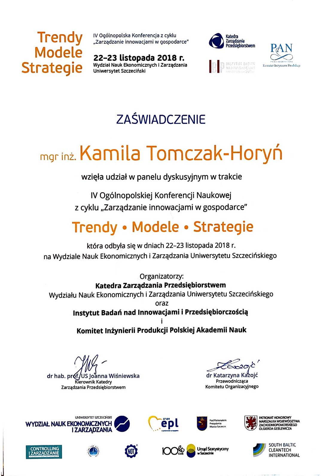 Tomczak-Horyń K.: Postawa twórcza pracowników-wyniki badań.[w:] Kazojć K. (red.): Zarządzanie przedsiębiorstwem w zmiennym otoczeniu, wiedza-decyzje-innowacje. Wyd. Volumina, Szczecin 2021, 17-27.